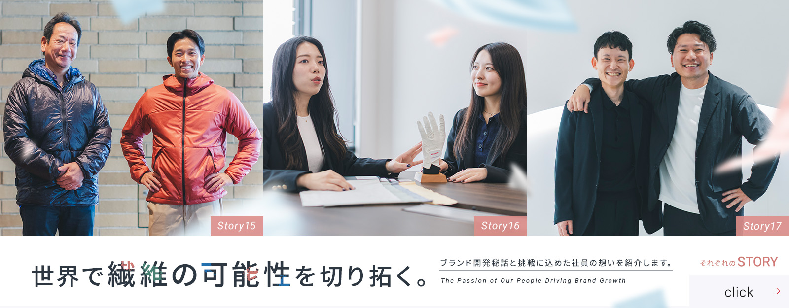 顧客、調達先、市場などを有機的に「つなぐ力」を持った繊維専門商社です。